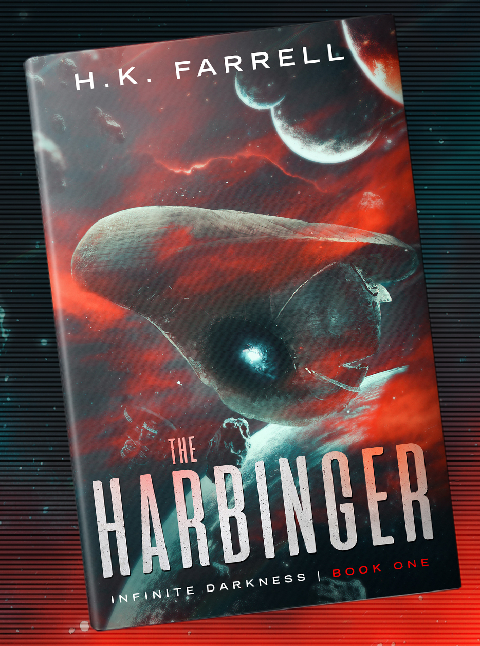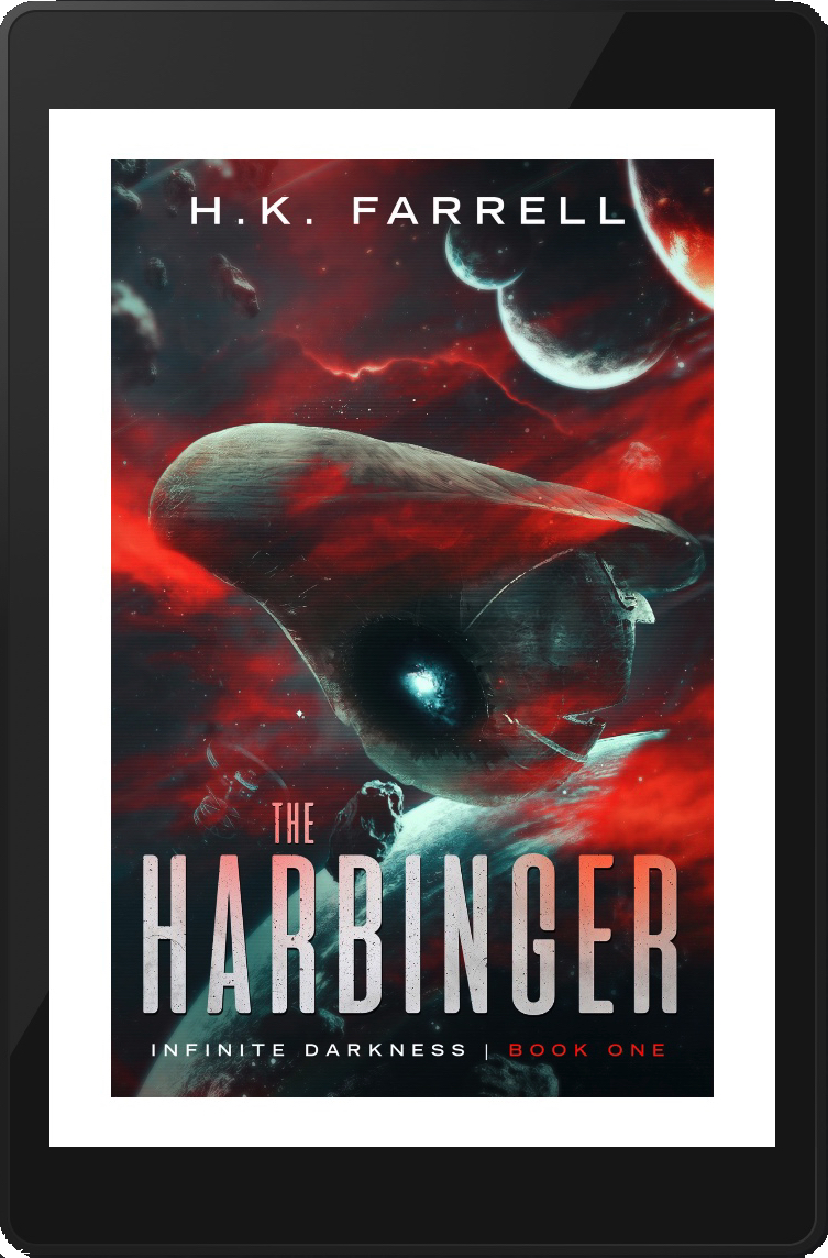 Book One in the Infinite Darkness series, The Harbinger is a gritty chase through the galaxy, exploring new worlds, strange technology, and danger faced not only from a race of blood-thirsty aliens but from those defending against them.